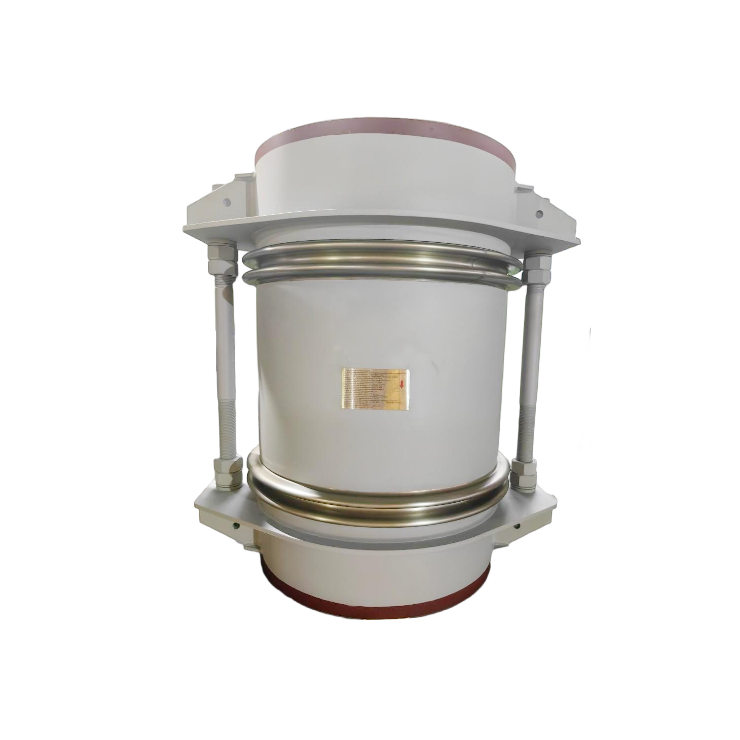 Universal tied bellows expansion joint-It consists of two bellows connected to the middle pipe, structural parts